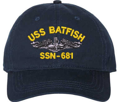 Show your Navy pride with this USS Batfish SSN-681 with Dolphins Unstructured Dad Cap from SubmarineGear. Crafted from 100% washed chino twill cotton, this six-panel, low-profile cap offers a relaxed and comfortable fit. Featuring high-quality embroidery done in our Scottsboro, Alabama facility, this cap is designed with a pre-curved visor and an adjustable tri-glide buckle closure for a perfect fit. Whether for everyday wear or as a meaningful gift, this cap is a great way to honor your own or a loved one's service.