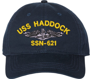 Show your Navy pride with this USS Haddock SSN-621 with Dolphins Unstructured Dad Cap from SubmarineGear. Crafted from 100% washed chino twill cotton, this six-panel, low-profile cap offers a relaxed and comfortable fit. Featuring high-quality embroidery done in our Scottsboro, Alabama facility, this cap is designed with a pre-curved visor and an adjustable tri-glide buckle closure for a perfect fit. Whether for everyday wear or as a meaningful gift, this cap is a great way to honor your own or a loved one's service.