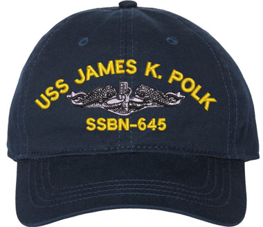 Show your Navy pride with this USS James K Polk SSBN-645 with Dolphins Unstructured Dad Cap from SubmarineGear. Crafted from 100% washed chino twill cotton, this six-panel, low-profile cap offers a relaxed and comfortable fit. Featuring high-quality embroidery done in our Scottsboro, Alabama facility, this cap is designed with a pre-curved visor and an adjustable tri-glide buckle closure for a perfect fit. Whether for everyday wear or as a meaningful gift, this cap is a great way to honor your own or a loved one's service.