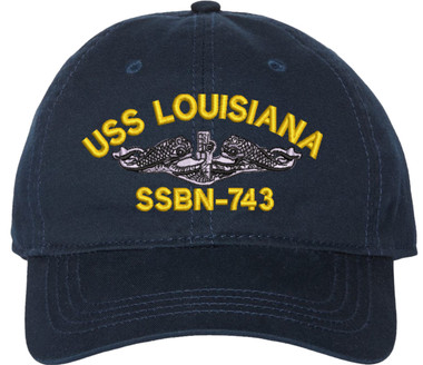 Show your Navy pride with this USS Louisiana SSBN-743 with Dolphins Unstructured Dad Cap from SubmarineGear. Crafted from 100% washed chino twill cotton, this six-panel, low-profile cap offers a relaxed and comfortable fit. Featuring high-quality embroidery done in our Scottsboro, Alabama facility, this cap is designed with a pre-curved visor and an adjustable tri-glide buckle closure for a perfect fit. Whether for everyday wear or as a meaningful gift, this cap is a great way to honor your own or a loved one's service.