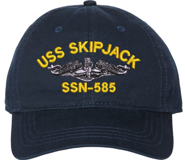 Show your Navy pride with this USS Skipjack SSN-585 with Dolphins Unstructured Dad Cap from SubmarineGear. Crafted from 100% washed chino twill cotton, this six-panel, low-profile cap offers a relaxed and comfortable fit. Featuring high-quality embroidery done in our Scottsboro, Alabama facility, this cap is designed with a pre-curved visor and an adjustable tri-glide buckle closure for a perfect fit. Whether for everyday wear or as a meaningful gift, this cap is a great way to honor your own or a loved one's service.